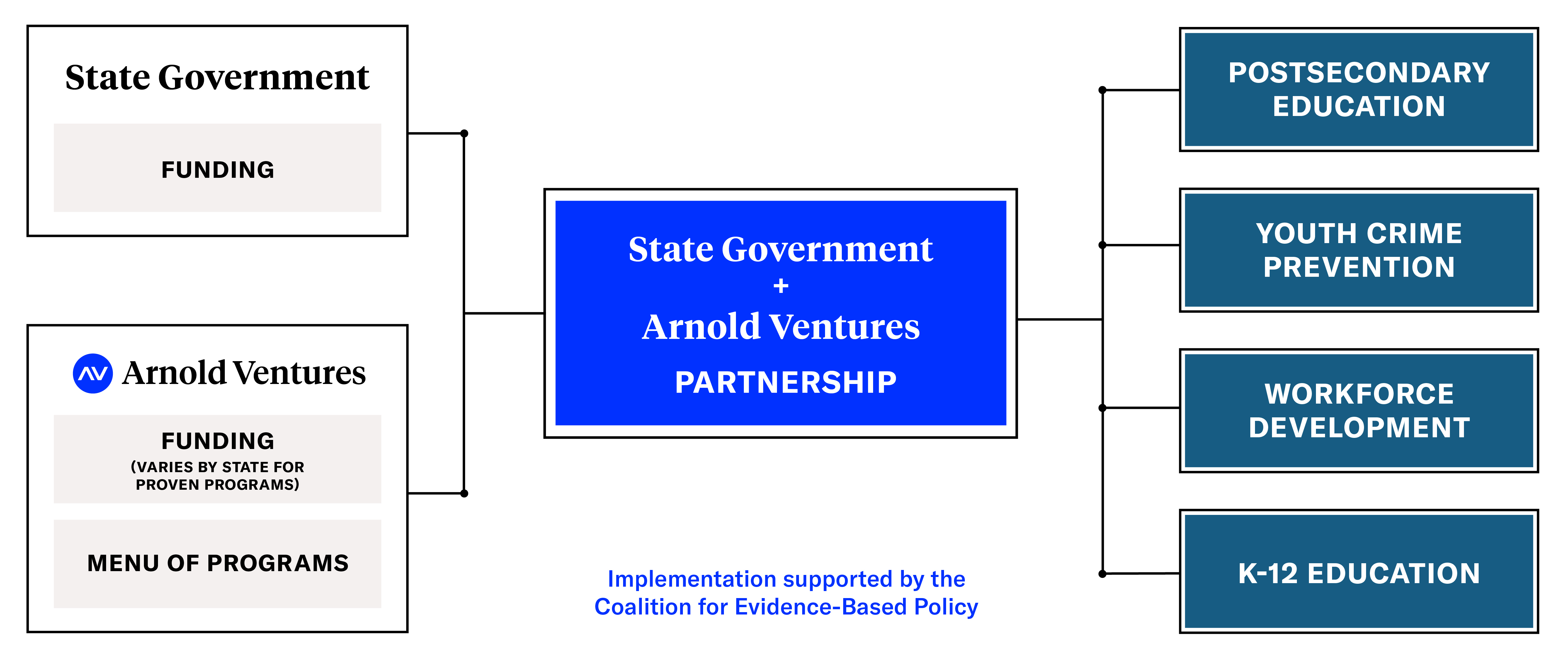 Currently, government social spending often fails to prioritize or reward programs with evidence of impact, leading proven programs to serve only a small fraction of those who could benefit. Our partnerships aim to address this funding gap by using philanthropic support to provide immediate public and philanthropic funds to scale programs backed by a robust body of evidence, helping policymakers fulfill their promises to their constituents.